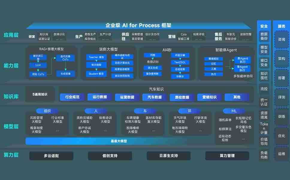 端到端的一站式AI工作空间深度融合了从企业战略规划到日常经营的全流程业务板块,,,定向解决车企内部领域多、、、部门多、、、链条长、、、场景碎片化等难题,,支持车企快速构建以AI为核心的生产力写作体系,,,实现任务执行与AI能力的无缝集成与交互